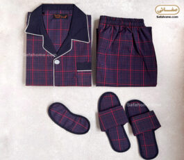 ست لباس خواب مردانه ۴تکه طرح چهارخانه بادمجانی