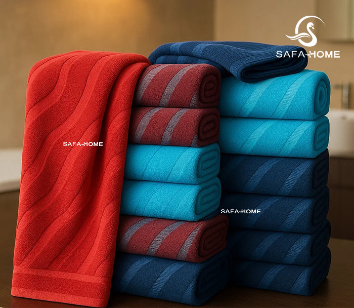 حوله استخری طرح آسو برق لامع از الیاف ۱۰۰٪ نخپنبه تولید شده و به همین دلیل از نظر لطافت، دوام و جذب رطوبت، عملکرد فوقالعادهای ارائه میدهد. این حوله در رنگبندی جذاب آبی، زرد، زرشکی، سبزآبی و سرمهای عرضه شده که امکان هماهنگی با سلیقه و استایل شخصی را فراهم میکند.