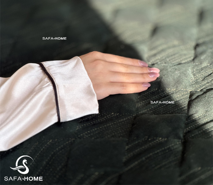 اگر بهدنبال یک روتختی دو نفره مخمل با ظاهر شیک، دوام بالا و کاربرد چهار فصل هستید، مدل آیلا از برند صفاهوم انتخابی حرفهای برای شماست. پارچه رویه از مخمل پنبه دوزیشده تولید شده که لطافت و ایستایی بسیار خوبی دارد و جلوهای لوکس به تخت خواب میبخشد. پارچه زیره از میکروکتان سبز رنگ طراحی شده تا در کنار زیبایی، تنفسپذیری و راحتی بیشتری فراهم کند.