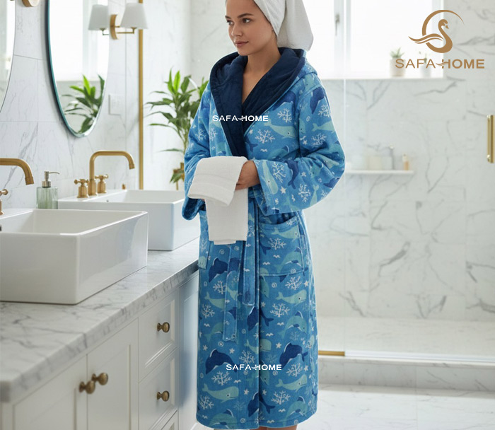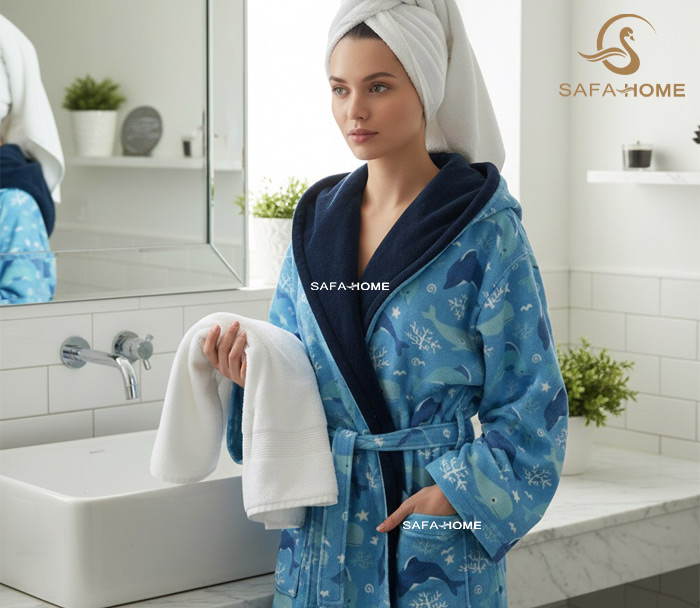طرح دلفین، ظاهر حوله را جذابتر کرده و حس طراوت و شادابی را به استفاده روزانه اضافه میکند.