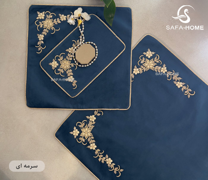 سرویس سجاده و جانماز سرمه دوزی از پارچهی مخمل باکیفیت تهیه شده است. تزیینات سرمه این سجاده بهصورت دستی روی آن دوخت شده است که جلوهای بسیار زیبا و اصیل به آن میبخشد. کیفیت دوخت این محصول بسیار بالا است و با آسترکشی دقیق و مغزیدوزی حرفهای، دوام و زیبایی آن چند برابر شده است.