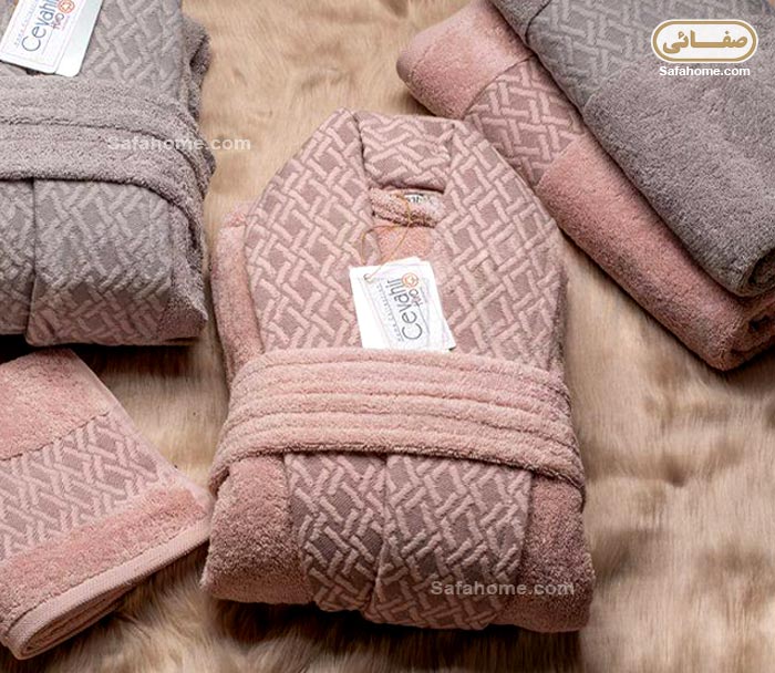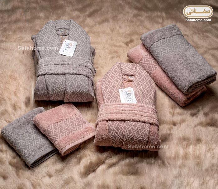 اگر قصد خرید ست حوله تن پوش را داشته باشید احتمالا به دنبال محصولی با کیفیت عالی می گردید. ما ست حوله تن پوش عروس و داماد ژاگارد طوسی و پوست پیازی تیره را به شما پیشنهاد می دهیم. این ست حوله با نخ 100% پنبه بافته شده است تا علاوه بر قدرت جذب آب عالی، جنسی لطیف داشته باشد. این کالای حمام به گونه ای تولید شده است که شما بتوانید بدون اینکه تغییری در رنگ و بافت آن ایجاد شود آن را مکررا استفاده کنید. همچنین اگر به یقه این محصول نگاهی بیاندازید متوجه طرح ژاگارد بسیار زیبای روی آن خواهید شد که ظاهر شکیل تری به این ست حوله داده است.
