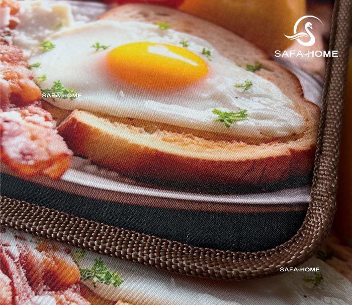 این دستگیره آشپزخانه جفتی با جنس 100٪ کتان، علاوه بر مقاومت بالا در برابر حرارت، احساس لطافت و کیفیت را منتقل میکند. طراحی سهبعدی صبحانه روی پارچه، جلوهای هنری و متفاوت به دکور آشپزخانه میبخشد و هنگام استفاده حس خوبی ایجاد میکند. ابعاد استاندارد 22×19 (2±) سانتیمتر باعث میشود بهراحتی قابلمهها، ماهیتابهها و ظروف داغ را جابهجا کنید. این محصول قابلیت شستشو در ماشین لباسشویی را داشته و ظاهر آن پس از شستشو نیز حفظ میشود.