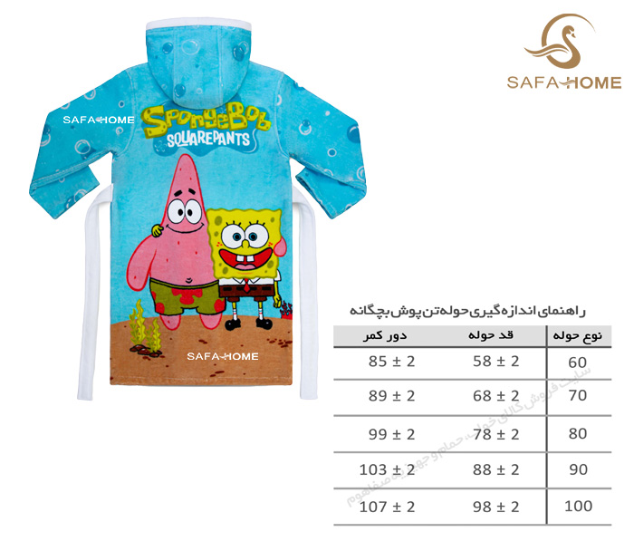حوله تن پوش بچگانه طرح باب اسفنجی آبی پودایران