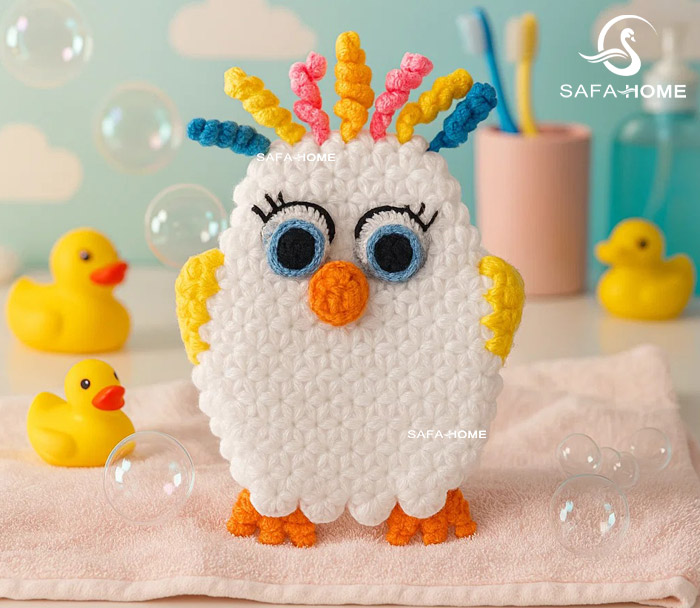 لیف بافتنی عروسکی مدل جوجه فرفری