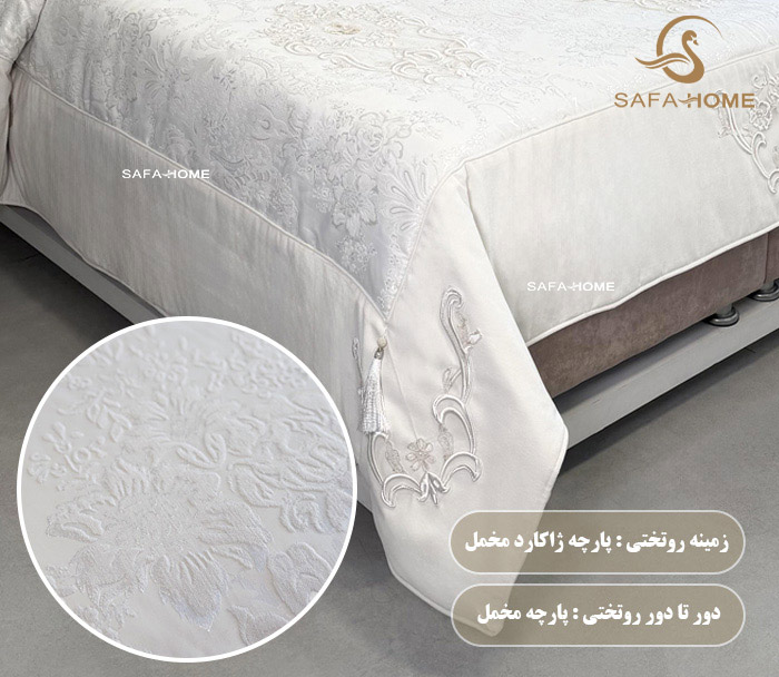روتختی عروس لیندا با جنس مخمل ژاکارد، گلدوزی برجسته و دوخت ظریف، انتخابی ایدهآل برای جهیزیه و اتاق عروس است. همین حالا خرید آنلاین کنید و جلوهای لوکس به اتاق خود بدهید!