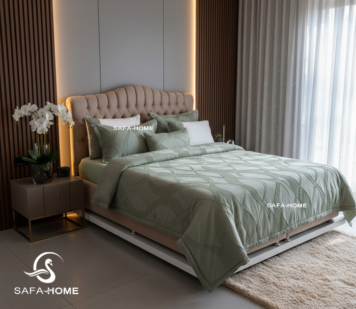 رنگ این محصول سبز آرامش‌بخش است که جلوه‌ای متفاوت و مدرن به اتاق خواب شما می‌بخشد.