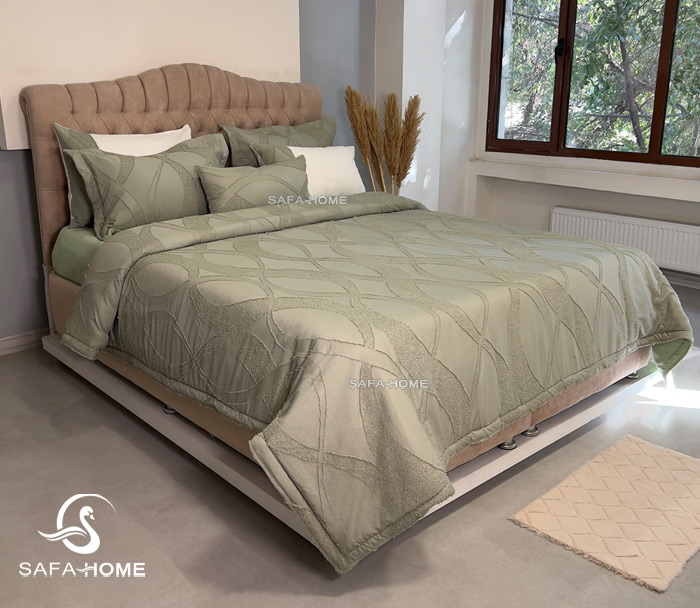 روتختی میلا 7 تکه با طراحی زیبا و رنگ سبز خاص، انتخابی شیک و کاربردی برای اتاق خواب شماست. این روتختی از جنس نقش برجسته با زیره میکروکتان تولید شده و نرمی و دوام بالایی دارد. این محصول علاوه بر زیبایی ظاهری، به دلیل کیفیت بالا برای استفاده روزمره و همچنین به عنوان بخشی از جهیزیه عروس بسیار مناسب است.