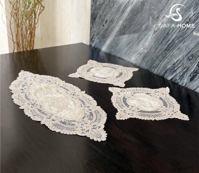 رومیزی مخمل قیطان طرح لوتوس، مجموعه‌ای زیبا، باکیفیت و مناسب برای دکوراسیون‌های شیک و پذیرایی‌های رسمی است. اگر به‌دنبال یک ست رومیزی بادوام و چشمگیر هستید، همین حالا این مدل را به سبد خرید خود اضافه کنید و فضای خانه‌تان را زیباتر کنید.