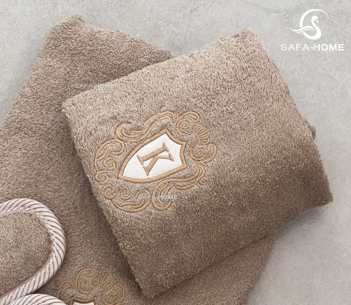 ست حوله دوقلو لوکس طرح مدرن شیری نسکافهای