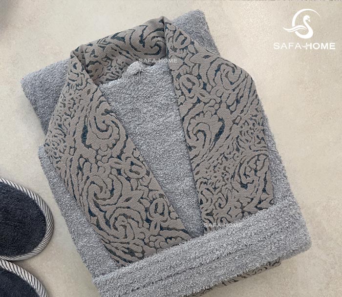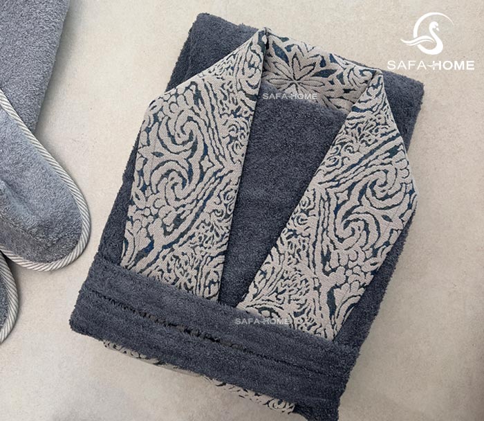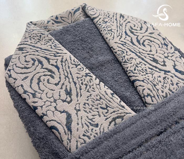 این سرویس 9 تکه شامل یک حوله پالتویی کلاهدار مردانه و یک حوله پالتویی کلاهدار زنانه با اندازه‌های استاندارد است. همچنین ۲ عدد حوله دستی ۴۰×۸۰ سانتی‌متر، ۲ عدد حوله استخری ۷۵×۱۳۵ سانتی‌متر و ۲ جفت پاپوش فری سایز همراه با طراحی ساده و راحت در این مجموعه قرار گرفته‌اند. رنگ‌بندی جذاب طوسی و سرمه‌ای باعث می‌شود که این ست به راحتی با دکوراسیون حمام شما هماهنگ شود.