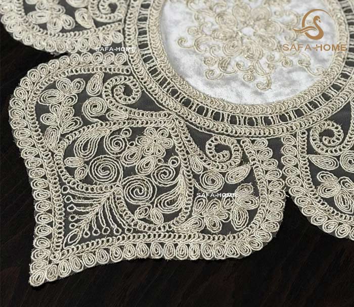 لبههای قیطاندوزیشده با جزئیات دقیق، ظاهر این رومیزی مربع مخملی طرح جاسمین را شیک و دستدوز نشان میدهد و آن را به گزینهای مناسب برای دکور میز جلو مبلی و میز عسلی تبدیل میکند.