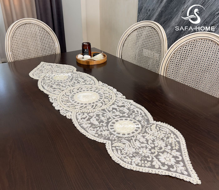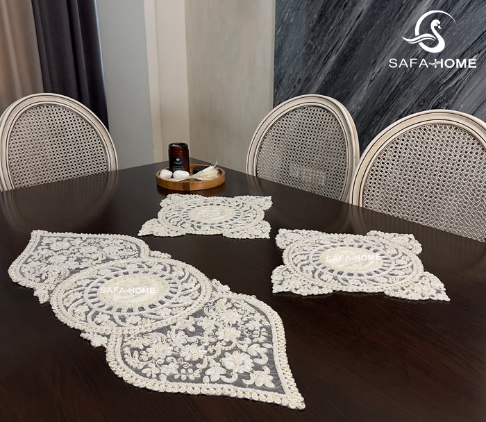 سرویس رومیزی ستاره جدید مرواریدی 5 تکه از آن دسته محصولاتی است که علاوه بر اینکه میزتان را شکیل تر می کند نمای اصلی میز را هم حفظ کند. اگر میز زیبایی دارید که می خواهید حتی با وجود رومیزی، نمای خود را نشان دهد پیشنهاد می کنیم سرویس رومیزی کتان 5 تکه طرح رانا را انتخاب کنید.