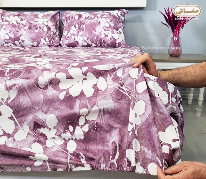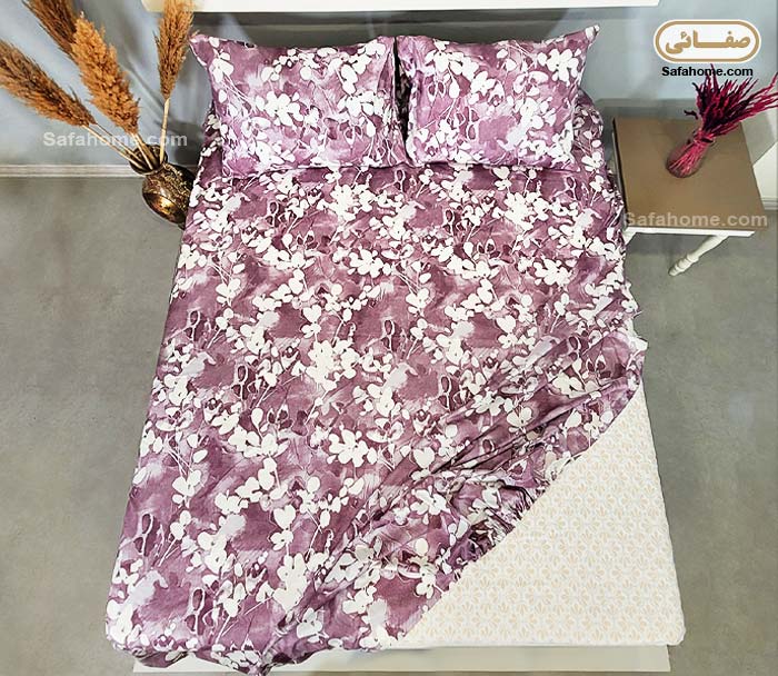 ملحفه نیم ست دو نفره آبرنگی صورتی بنفش شامل: