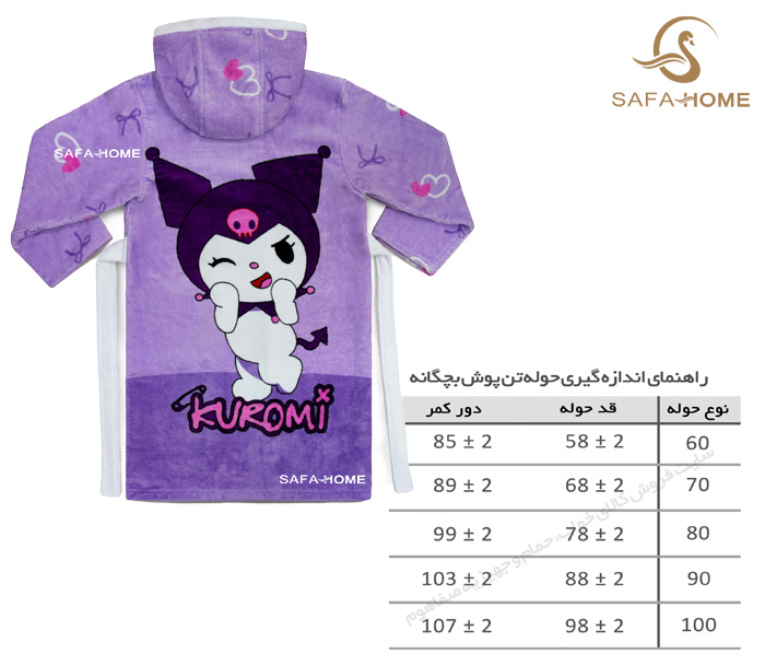 حوله تن پوش کودک طرح کرومی محصولی از برند معتبر پودایران است. این حوله با رنگ بنفش شاد و طرح کارتونی جذاب، دلبستگی کودک شما را به حمام افزایش می‌دهد.