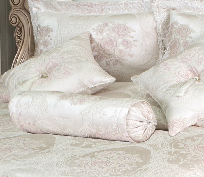 همیشه در خرید کالای خواب دوام و ماندگاری محصول از اهمیت بالایی برخوردار است، جنس پارچه رویه سرویس روتختی رجینا صورتی، ژاگارد ترک می باشد. این نوع پارچه علاوه بر زیبایی، از مقاومت بسیار بالایی برخوردار است. همچنین برای اینکه این روتختی صرفا جنبه ظاهری نداشته باشد و شما بتوانید به آسانی از آن به عنوان یک رو انداز استفاده کنید، در قسمت زیره آن، از پارچه کتان استفاده شده است که همین امر باعث می شود تا شما بتوانید آن را به راحتی بر روی خود انداخته و استفاده کنید.