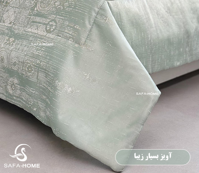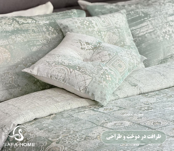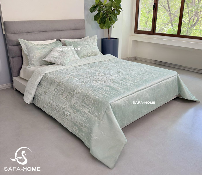 روتختی مدل گرینا از برند معتبر صفاهوم، انتخابی خاص برای کسانی است که به ظرافت و کیفیت اهمیت میدهند. ترکیب رنگ سبز آرامشبخش و بافت خاص پارچه ژاکارد، این محصول را به گزینهای ایدهآل برای جهیزیه و دکور اتاق خواب تبدیل کرده است.