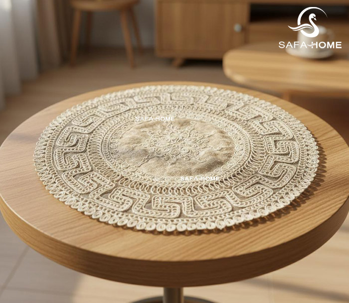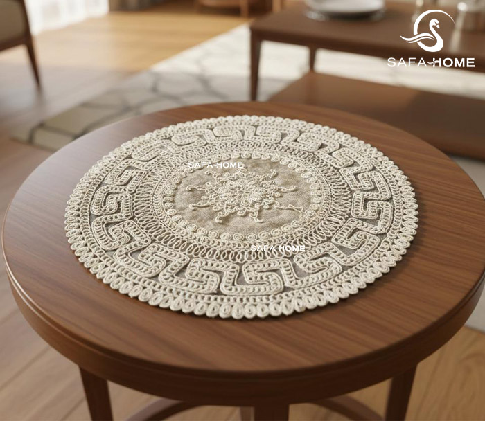 رومیزی عسلی گرد قیطان دوزی ورساچه کد 1 رنگبندی متنوع