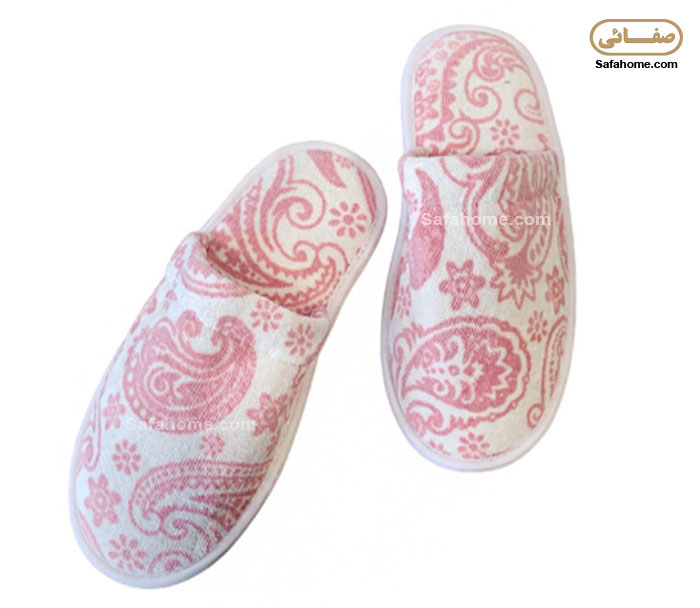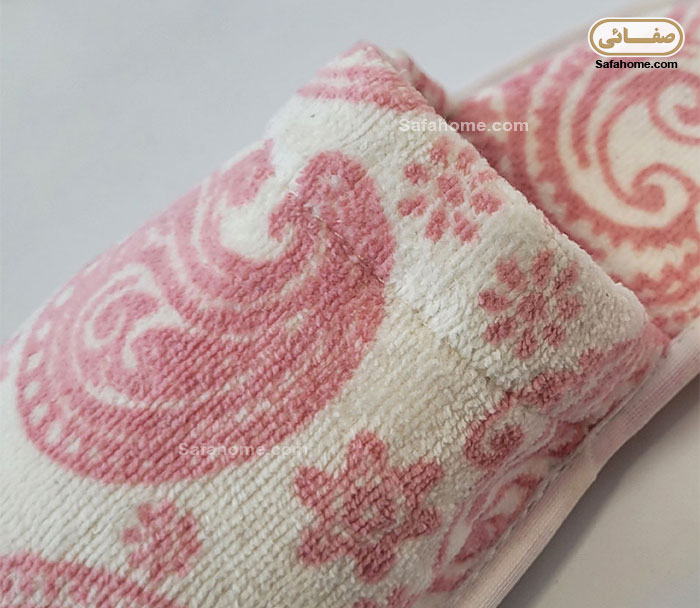 دمپایی حوله ای پودایران طرح ترمه صورتی
