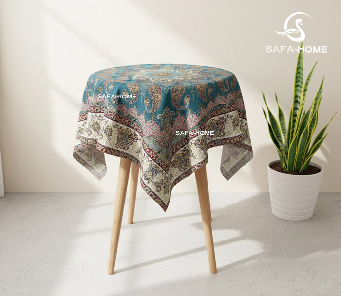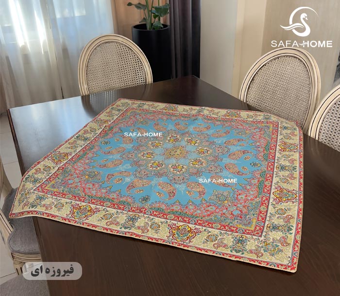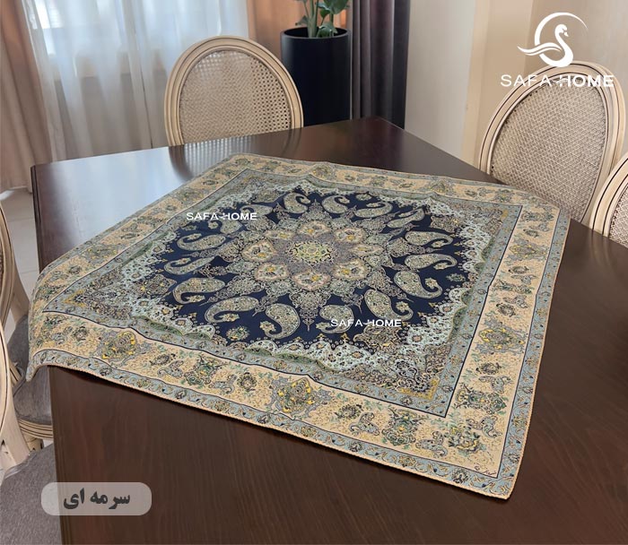 رومیزی طرح کهن با رنگ‌های سنتی، فضای خانه را گرم‌تر و صمیمی‌تر نشان می‌دهد و به‌راحتی با سبک‌های دکوراسیون سنتی، کلاسیک و حتی مدرنِ ترکیبی ست می‌شود.