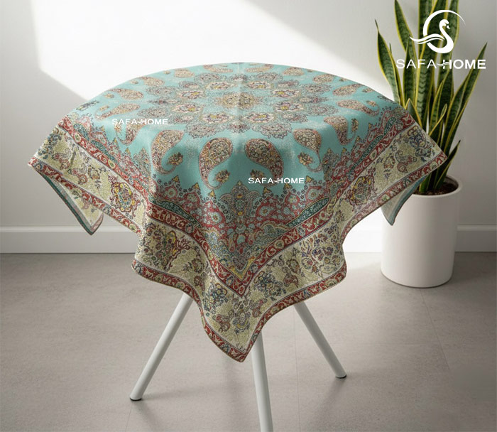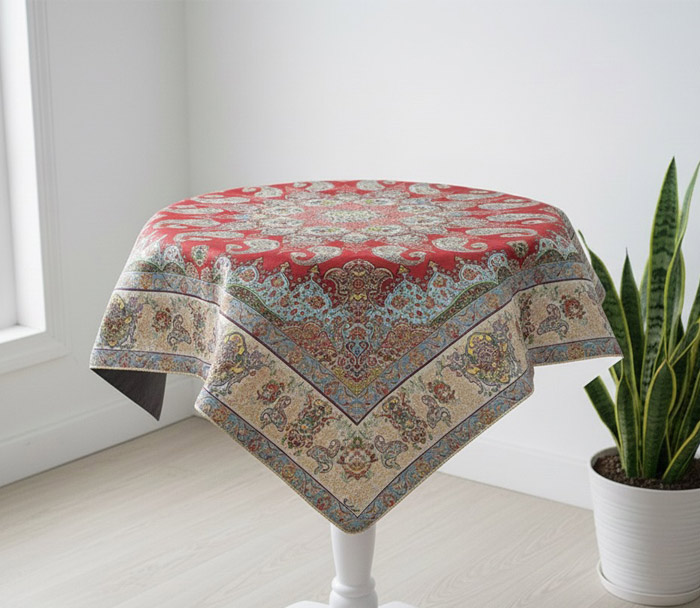 پارچه ترمه نخی با کیفیت بالا باعث شده این رومیزی علاوه بر ظاهر باشکوه، دوام مناسبی برای استفاده طولانی‌مدت داشته باشد.