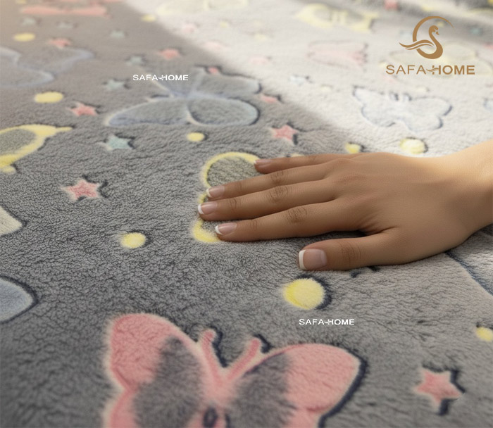 خاصیت شبنما، تفاوت اصلی این محصول است؛ زمانی که نور محیط کم میشود، طرح پروانهها با درخشش ملایم جلوهای زیبا ایجاد میکنند و همین ویژگی، آن را از پتوهای معمولی متمایز میکند.