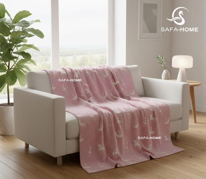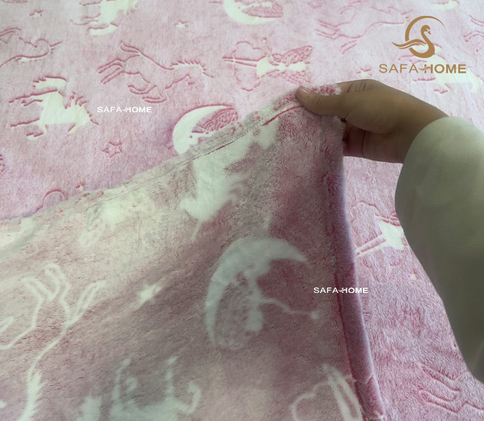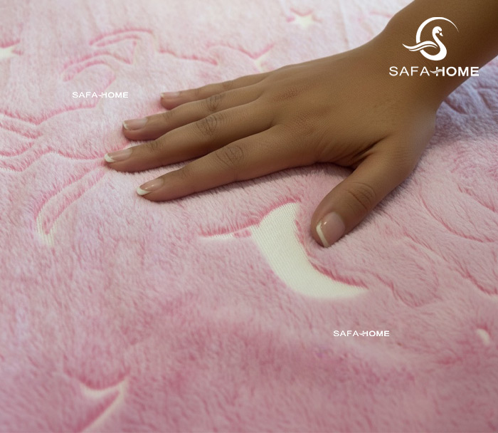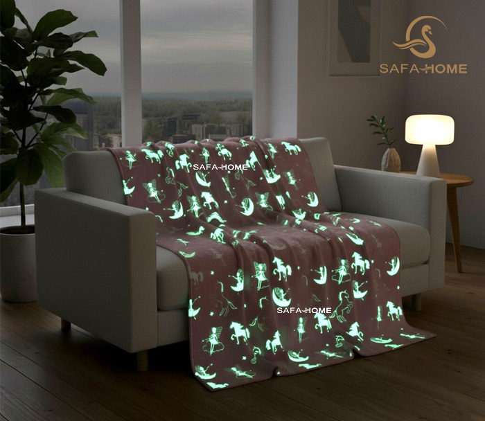 طرح اسب تکشاخ که روی پتو چاپ شده، در محیطهای کمنور جلوهای درخشان ایجاد میکند و ویژگی شبنما آن باعث میشود حتی در تاریکی نیز ظاهر پتو دیده شود و حس خوبی منتقل کند.