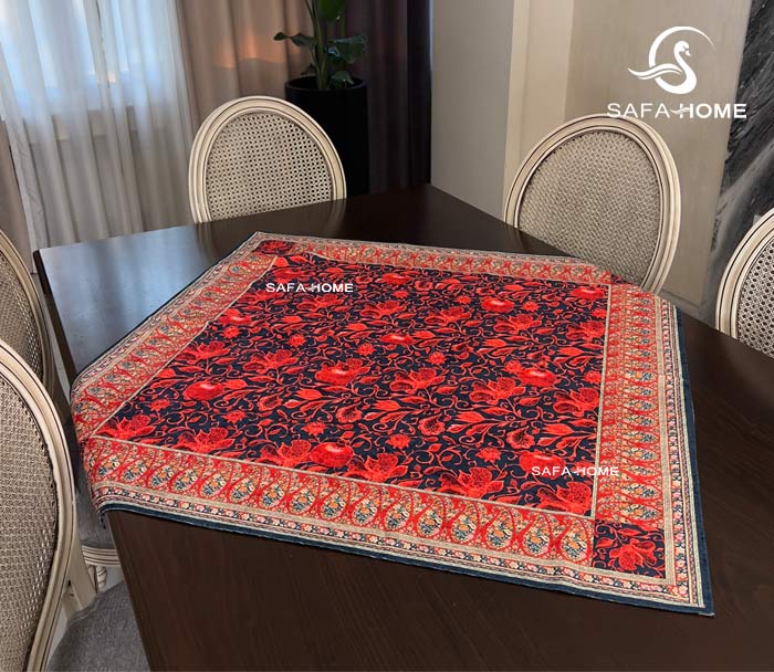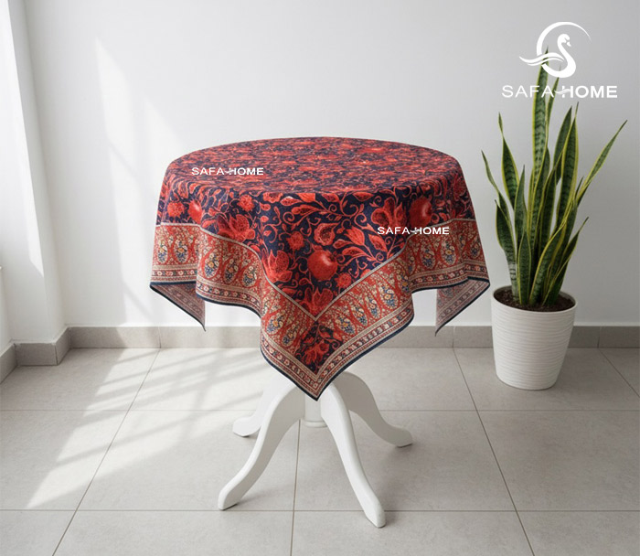 ابعاد 100×100 (±2) سانتی‌متری، آن را برای استفاده روی میزهای جلو مبلی، میز پذیرایی و حتی میزهای چیدمان یلدایی مناسب می‌سازد.