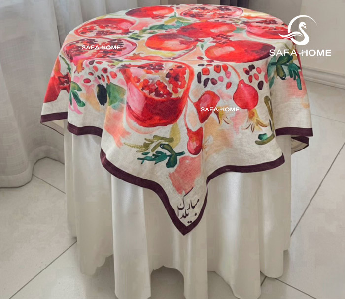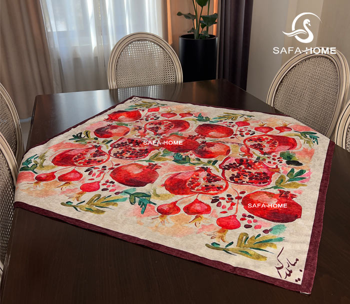 اگر بهدنبال رومیزی یلدایی هستید که ظاهرش کمی متفاوتتر از طرحهای تکراری باشد، طرح آبرنگ یکی از بهترین انتخابهاست. طراحی آرامشبخش و هنرمندانه آن باعث میشود میز پذیرایی یا میز جلو مبلی شما در اولین نگاه توجه مهمانها را جلب کند.