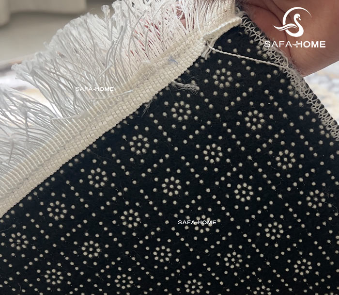 قسمت زیرین این فرشینه بهصورت ضدلغزش طراحی شده تا روی سرامیک و پارکت جابجا نشود و ایمنی استفاده را افزایش دهد. همچنین ثبات رنگ و کیفیت چاپ، باعث میشود با شستوشو یا استفاده مکرر ظاهر اولیه حفظ شود.